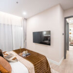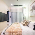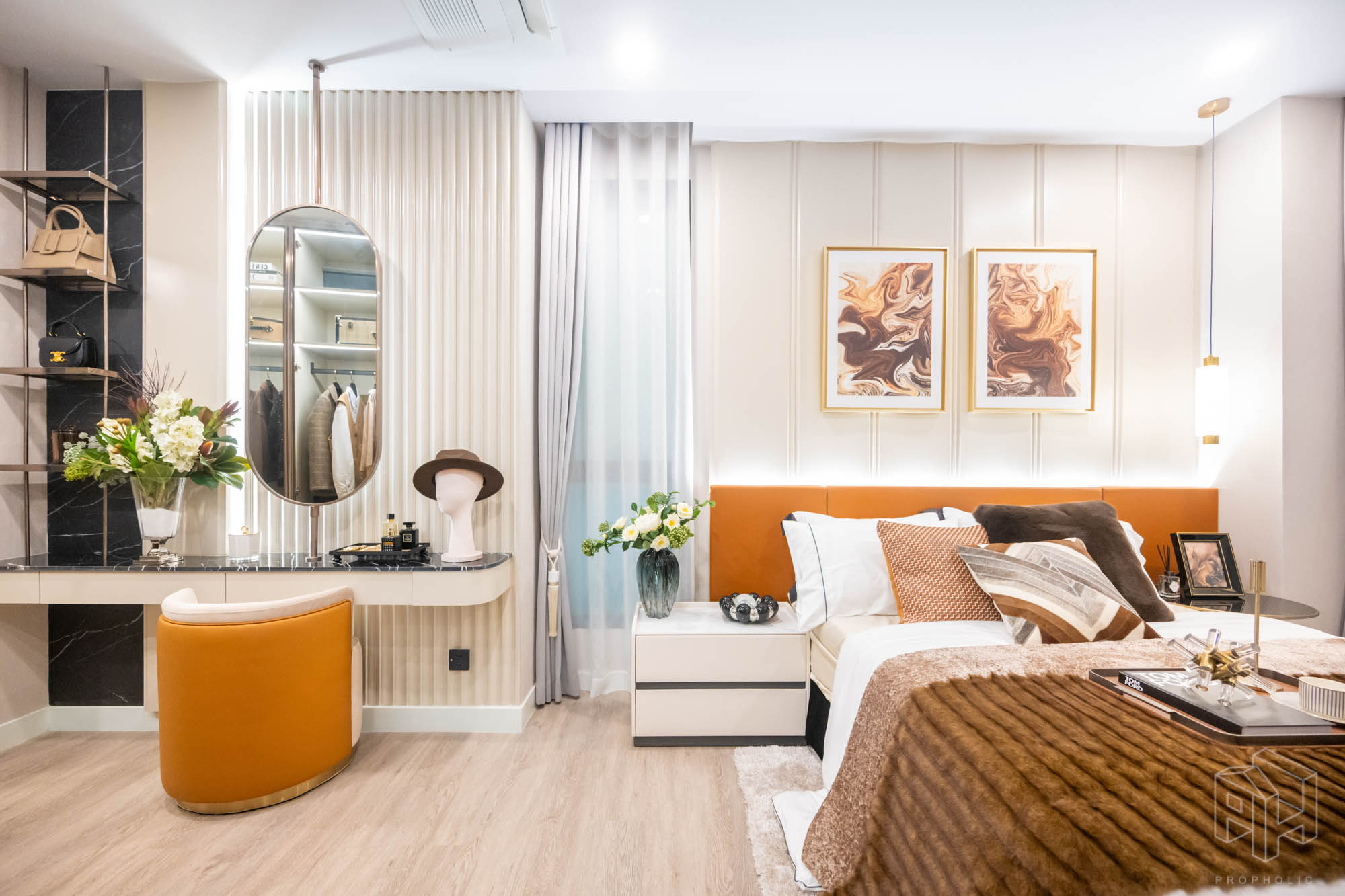 ห้องนอนมีพื้นที่กว้าง วางเตียงขนาด 5 – 6 ฟุตได้สบาย พร้อมทั้งยังวางโต๊ะข้างหัวเตียงเพิ่มได้