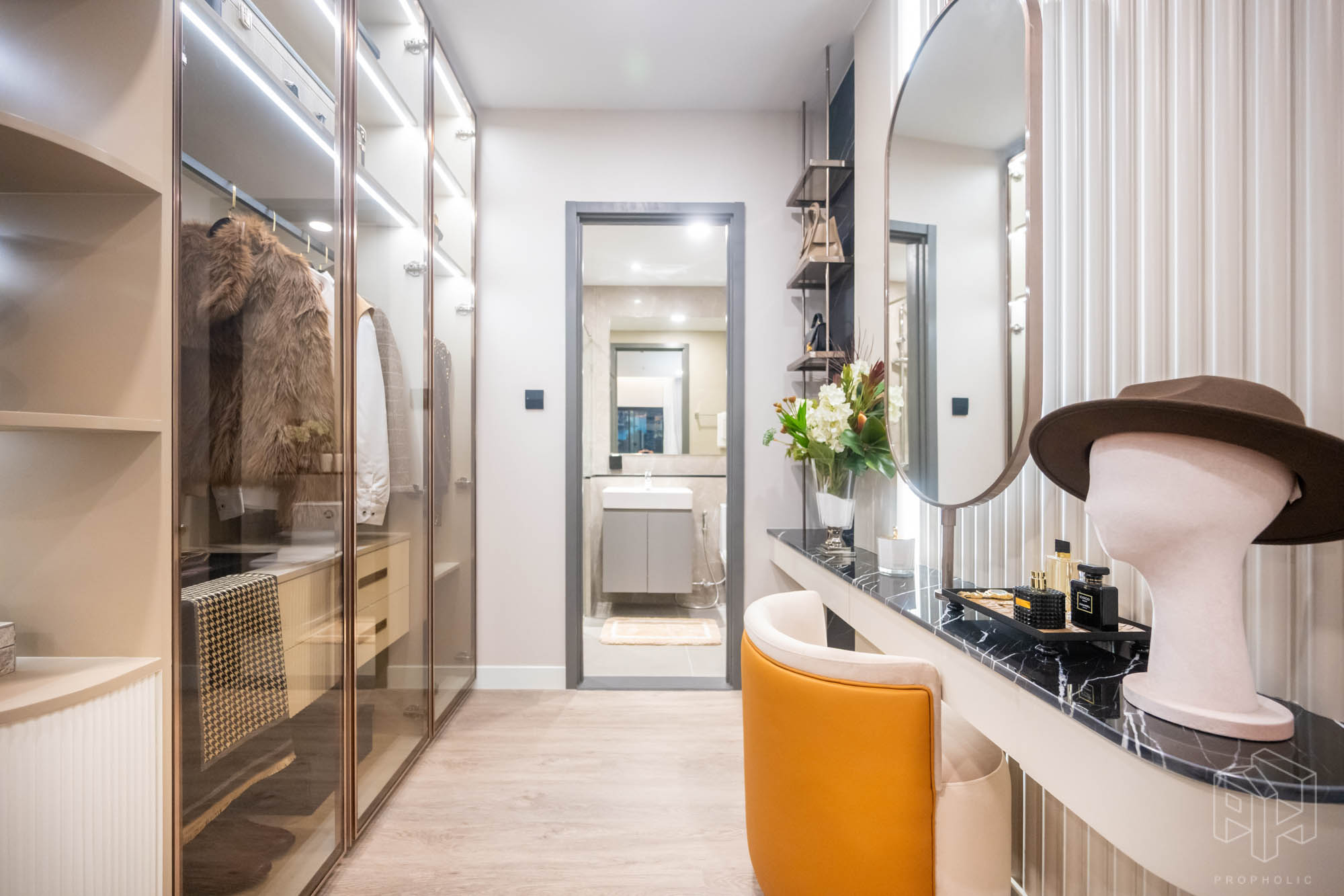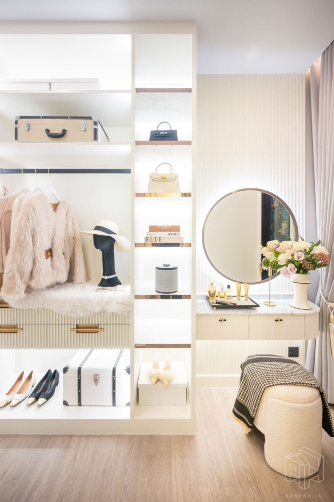 วางได้ทั้งโต๊ะเครื่องแป้ง สามารถ Built-in ตู้เสื้อผ้าขนาดใหญ่ได้ และติดตั้งหน้าหน้าต่างบานกระทุ้งให้แยกออกมาจากฝั่งห้องนอนอีกด้วย ไม่ต้องเปิดไฟค้นหาเสื้อผ้าหรือแต่งหน้าอีกต่อไป