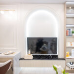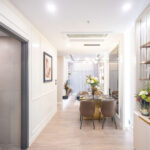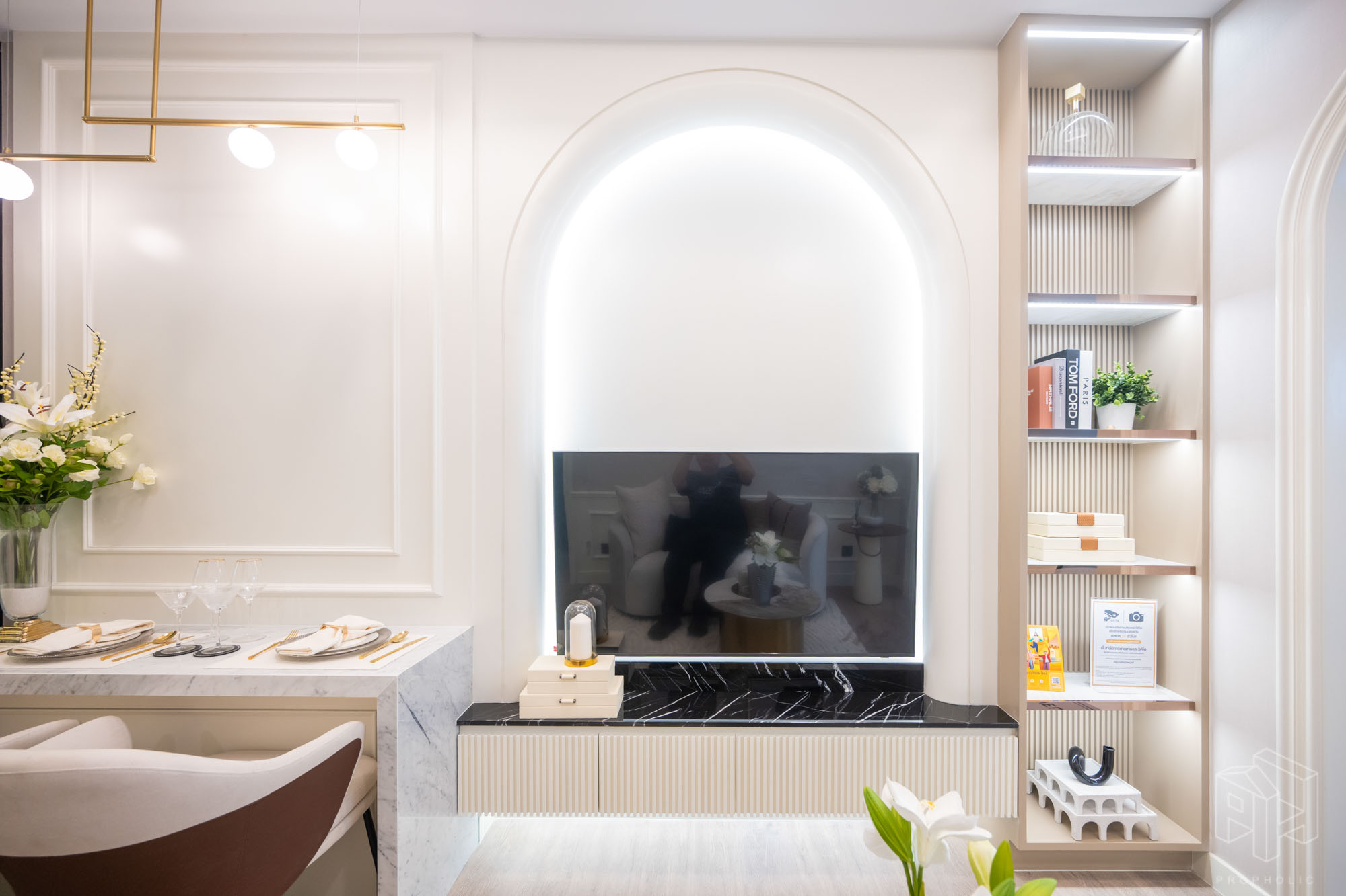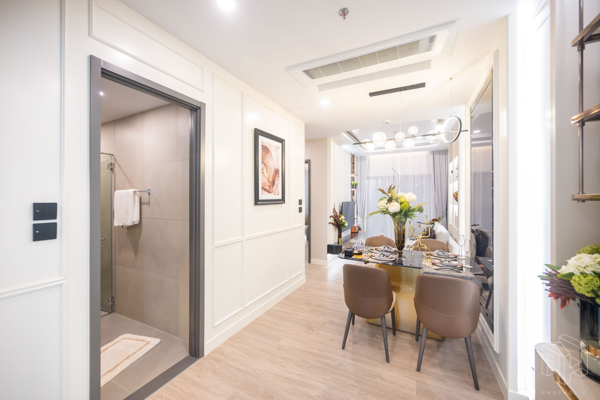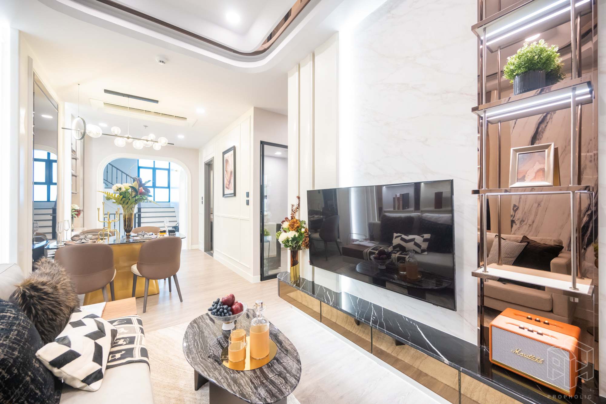 บริเวณหน้าห้องเป็นพื้นที่ของห้องนั่งเล่นและโต๊ะทานอาหาร ด้วยพื้นที่ห้องกว้าง สามารถวางตู้โชว์หรือชั้นวางรองเท้าไว้หน้าห้องได้ เพดานห้องสูง 2.7 เมตร ปูด้วยพื้น SPC พร้อมติด Wallpaper ภายในห้องให้ และแอร์แบบ Cassette Type 1 ทิศทาง พร้อม PM 1.0 Filter ที่ดูดี เสียงไม่ดัง