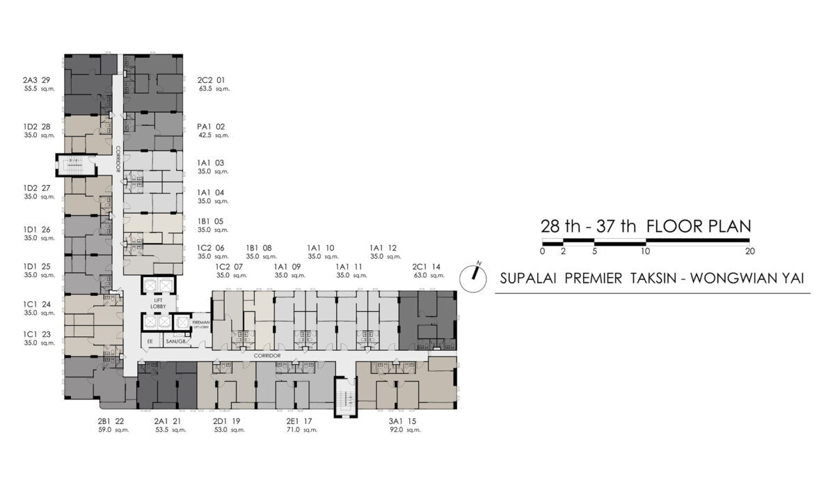 ชั้น 28 – 37 เป็นส่วนของห้องพักอาศัย ที่คละห้องตั้งแต่ 1 Bedroom ไปจนถึง 3 Bedroom