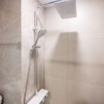 ห้องน้ำกั้นส่วนแห้งและเปียกให้ ให้เครื่องทำน้ำร้อน สุขภัณฑ์ใช้แบรนด์ American Standard ทั้งหมด พร้อม Rain Shower ในห้องอาบน้ำ