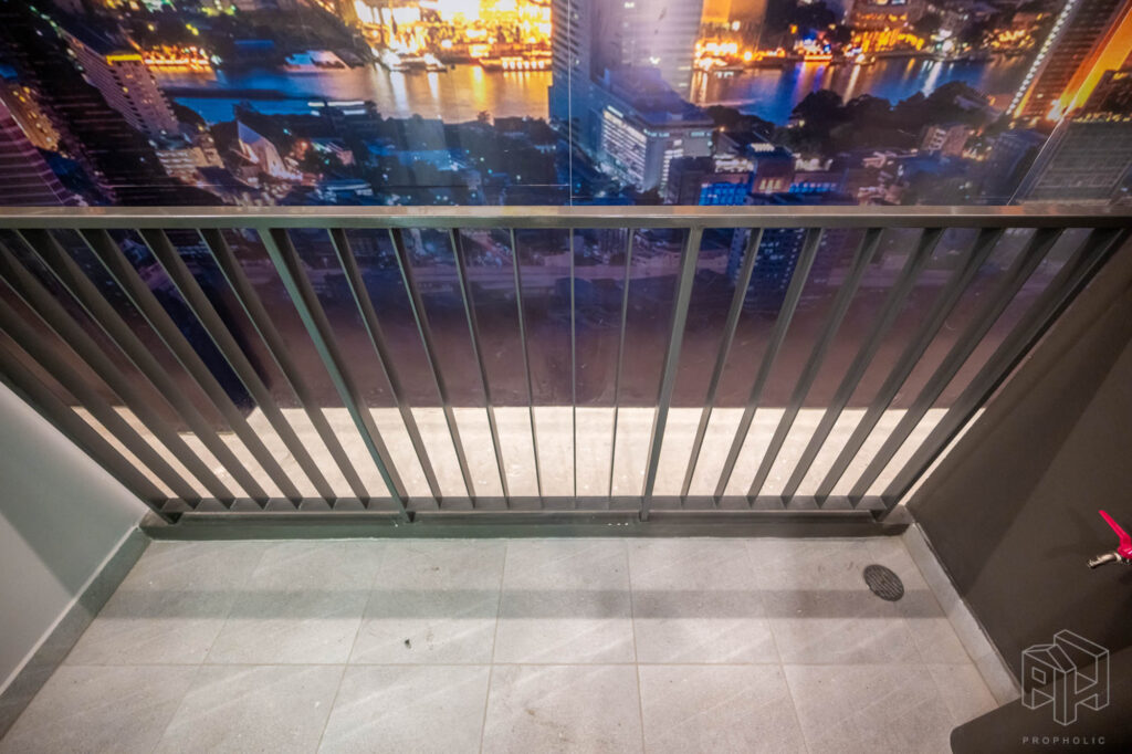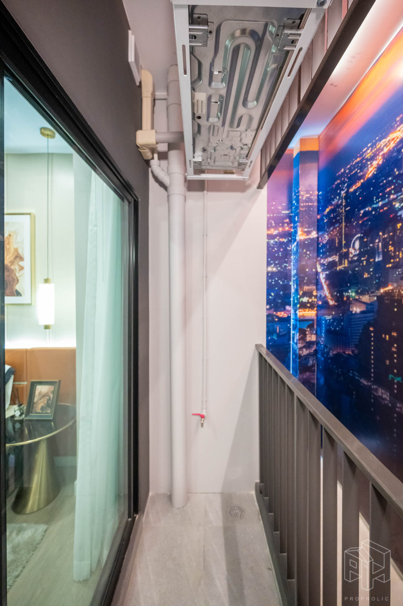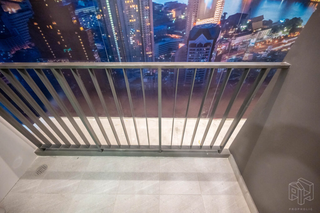 ระเบียงมีพื้นที่กว้าง แขวน CDU แอร์ไว้ด้านบน
