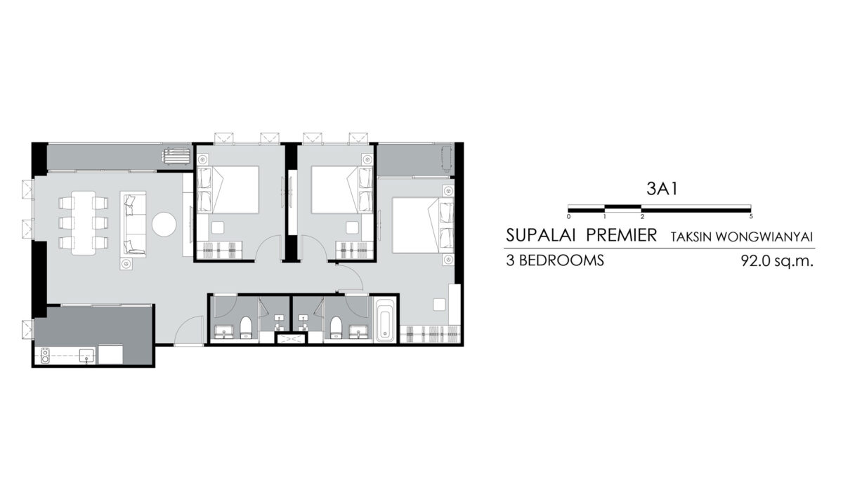 3. เหมาะทั้งซื้ออยู่เองและลงทุน ด้วยห้องขนาดใหญ่ ราคาต่อตารางเมตรไม่แพง Competitive ที่สุดในบรรดาทุกโครงการคอนโดเปิดใหม่ในย่านตากสิน – วงเวียนใหญ่ ด้วยโครงการดูมีความสวยหรูดูดีและ Practical ใช้งานได้จริง บวกกับปัจจัยราคาที่ถือว่าถูกกว่าคู่แข่งแต่สเปคไม่เป็นรองใครเลย เฉลี่ย 77,000 บาทต่อตารางเมตร ใช้เงินแค่ไม่ถึง 7.5 ล้านบาท ก็เป็นเจ้าของห้อง 3 นอนขนาด 92 ตารางเมตร ได้แล้ว โดยศุภาลัยเป็นที่รู้จักกันดีในการออกแบบห้องชุดที่มีขนาดกว้างขวางเมื่อเทียบกับโครงการอื่นๆ ในระดับราคาเดียวกัน ทำให้รู้สึกโปร่งสบายและใช้งานพื้นที่ได้คุ้มค่า เมื่อพิจารณาจากราคาขายต่อตารางเมตร โครงการนี้ถือว่ามีความสามารถในการแข่งขันสูง เมื่อเทียบกับคอนโดมิเนียมเปิดใหม่ในย่านตากสิน – วงเวียนใหญ่ ซึ่งตอบโจทย์ทั้งผู้ที่ต้องการหาที่อยู่อาศัยในราคาที่จับต้องได้และนักลงทุนที่มองหาโอกาสในการทำกำไรในอนาคต ด้วยทำเลที่ใกล้รถไฟฟ้าและสิ่งอำนวยความสะดวกต่างๆ ทำให้มีความต้องการเช่าสูงจากทั้งคนไทยและชาวต่างชาติ ทำเลตากสิน – วงเวียนใหญ่ยังคงเติบโตอย่างต่อเนื่อง มีการพัฒนาโครงสร้างพื้นฐานใหม่ๆ ทำให้ราคาที่ดินและคอนโดมิเนียมมีแนวโน้มปรับตัวสูงขึ้นในระยะยาว