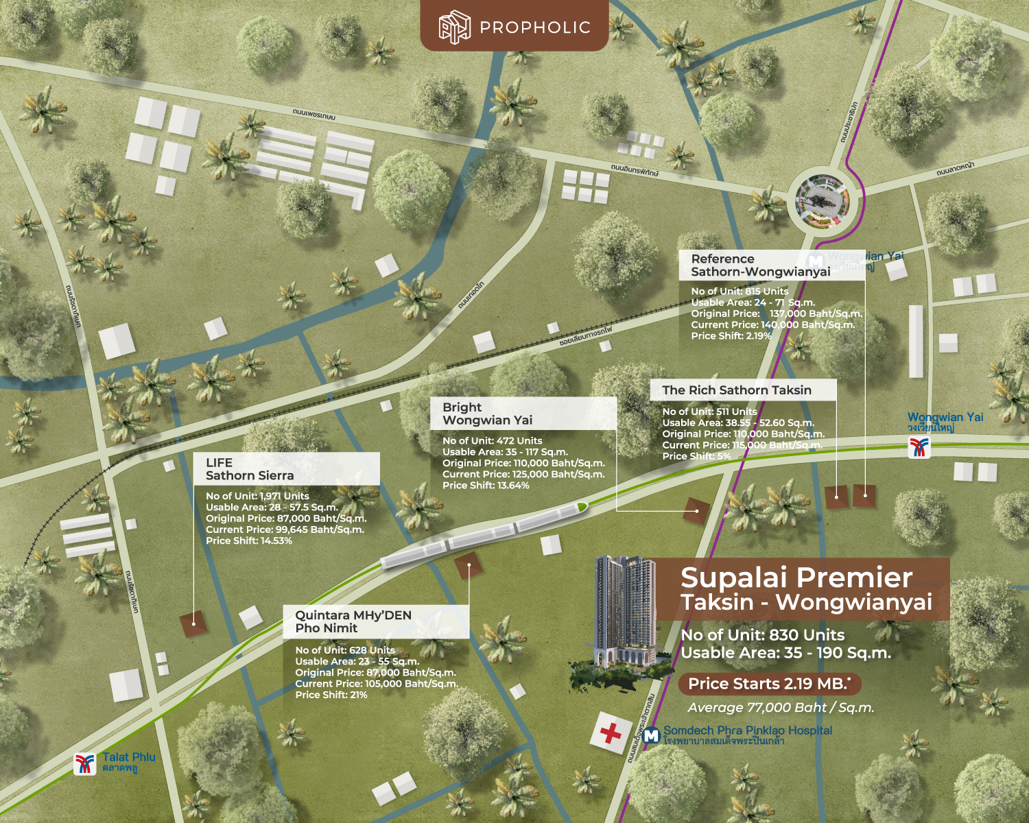 ด้วยศักยภาพทำเล และด้วยความเชี่ยวชาญพื้นที่ด้านฝั่งธนฯ ของศุภาลัย ที่ได้รับเสียงตอบรับจากหลากหลายโครงการคอนโดในย่านฝั่งธนฯ เป็นอย่างดี ศุภาลัย จึงกลับมารุกทำเลฝั่งธนฯ อีกครั้ง กับโครงการแรกบนถนนสมเด็จพระเจ้าตากสินที่ Supalai Premier Taksin – Wongwianyai (ศุภาลัย พรีเมียร์ ตากสิน – วงเวียนใหญ่) ทำเลดาวรุ่งของฝั่งธนฯ ที่แม้จะยังไม่ค่อยมีโครงการคอนโดเกิดขึ้นใหม่มากเท่าไหร่ แต่ด้วยความคืบหน้าของเส้นทางรถไฟฟ้าสายสีม่วงใต้ รวมกับราคาขายสุดเร้าใจ คุ้มกว่า ถูกกว่า ห้องใหญ่กว่า ทุกโครงการในย่านเดียวกัน จึงเชื่อว่านี่จะเป็นอีกหนึ่งโครงการขายดีประจำปีนี้ของค่ายศุภาลัยอย่างไม่ยาก ไปติดตามความน่าสนใจพร้อมกันในบทความนี้ได้เลย